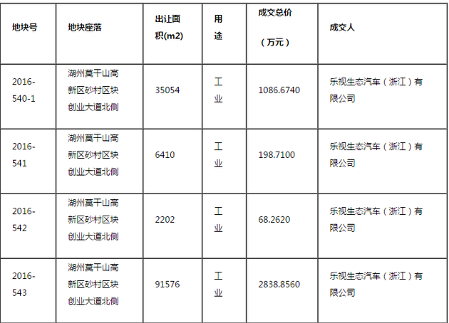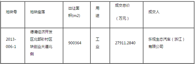 4月28日,据浙江德清县公共资源交易中心网站消息,26日,乐视汽车在浙江德清获得土地约679亩,总成交价约1.4亿元。根据公示,买下土地的是乐视生态汽车(浙江)有限公司(下称乐视汽车浙江)。