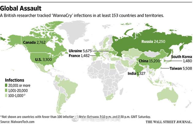 本次网络攻击对欧洲和亚洲的打击尤为严重。不过Snyder称,全球近90%的网络保险都是由美国的公司购买。即使一些受影响的公司没有购买网络保险,这些公司或许可以将损失计入与赎金或敲诈相关的已有保单。