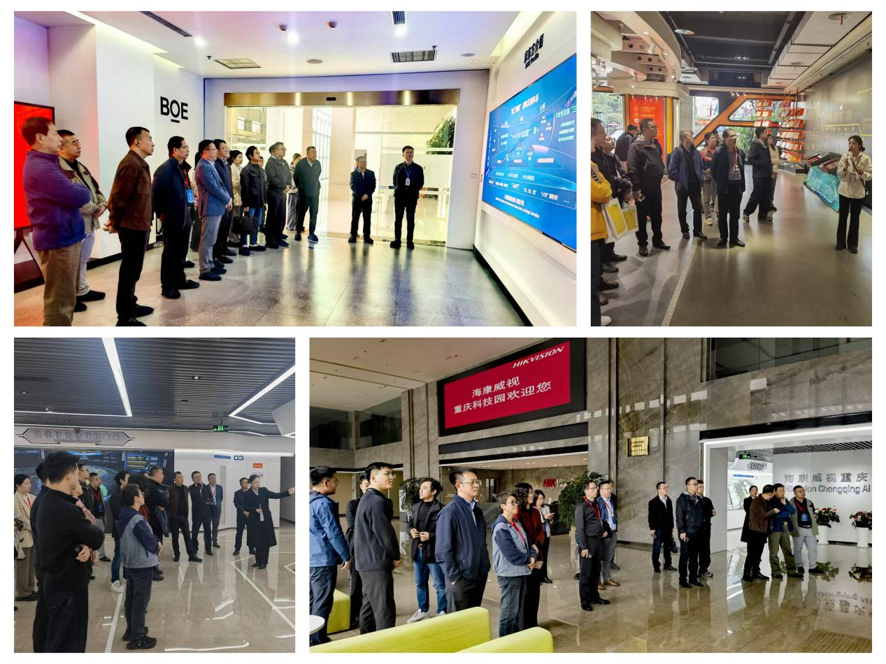 在实地观摩环节,活动精心策划“传统+新兴”场景体验,组织学员参观了重庆发那科机器人有限公司应用展示中心、重庆京东方光电科技有限公司B8工厂的高世代液晶面板产线、重庆海康威视科技有限公司的网络摄像机装配产线、长城汽车股份有限公司重庆分公司的焊装和总装线、重庆宗申动力机械股份有限公司的发动机装配线和展厅,以及重庆忽米网络科技有限公司的科技展厅,全面了解不同领域的数字化转型成果。