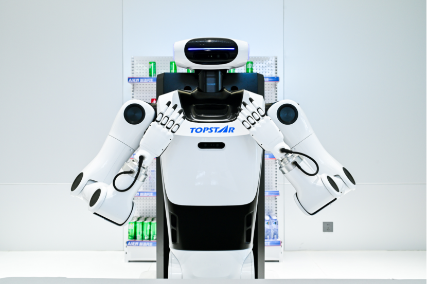 智能人形机器人“小拓”,搭载智谱旗舰大模型,推理速度是行业平均水平的4倍,同时部署了高达3352TOPS的端侧算力,高效实现云边端协同。全身采用拟人化的设计理念,整机21个自由度,双臂负载20Kg;高度120cm至180cm可调节。可360°全向行走,最大速度为1.5m/s(约5.4公里/小时),与人类正常行走速度相当。相较于双足设计,轮式方案在厂房、车间等环境中具备更高性价比,能更好平衡移动效率与负载能力。小拓支持灵巧手、夹爪、吸盘等多种未端执行器,轻松适应不同的工作任务。此外,采用模块化的设计理念,可以根据实际作业场景与任务搭建出人形双臂机器人与机械臂方案,以更高性价比的方案来服务于实际需求。