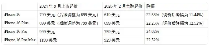 2月5日消息,科技媒体MacRumors于4日发文称,苹果公司在美国在线商店上架了官方翻新版iPhone16全系机型,相比2024年9月的首发价格,降幅在12%至22%之间。