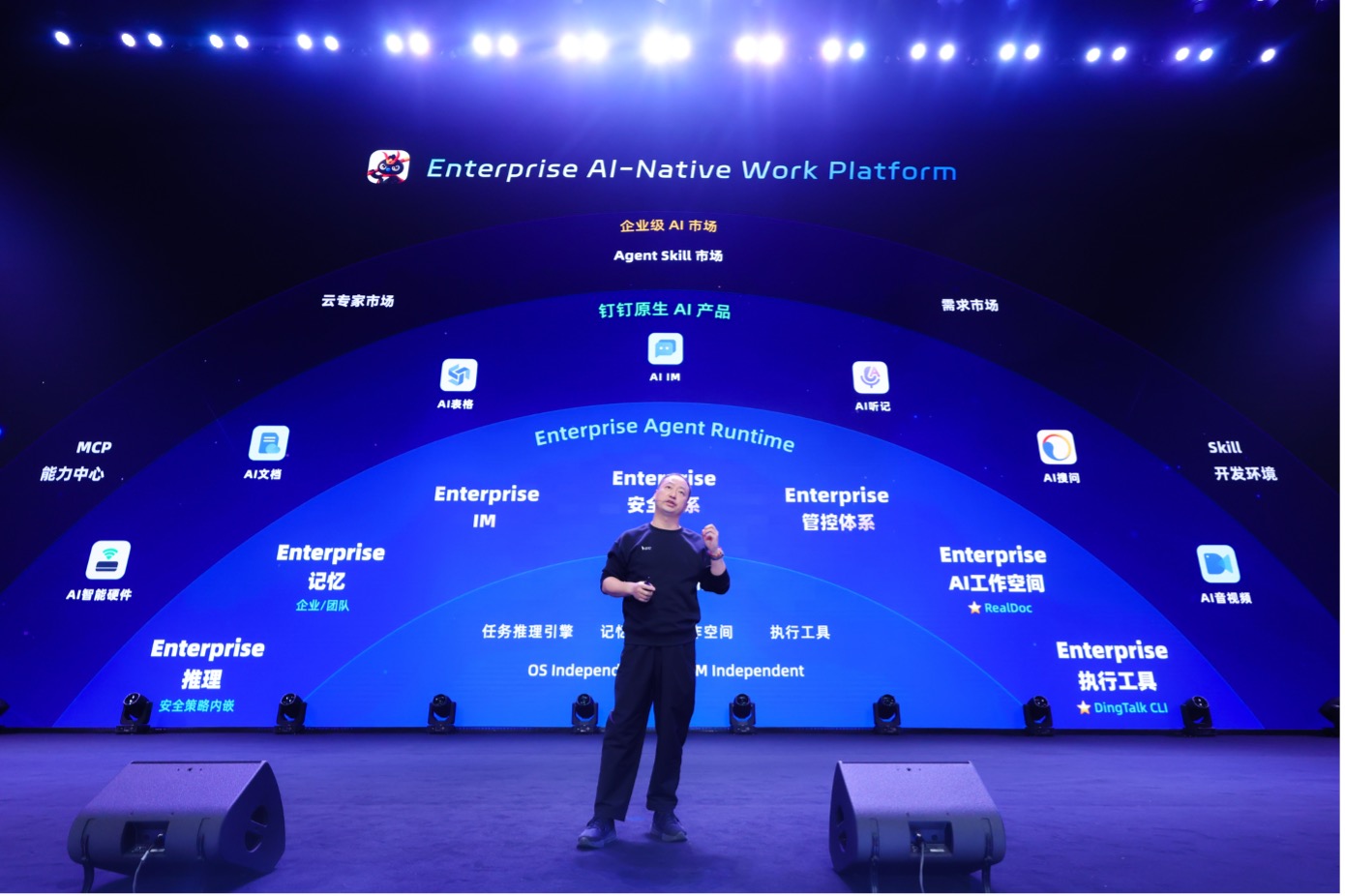 发布会上,陈航公布了一系列AI原生工具。例如,AI原生文件系统RealDoc,可以让AI以最小单元操作,减少Token浪费。他还提到,人机协作的范式已经历从DOS到GUI,再到LUI的变迁,而在AI成为生产主体的当下,CLI时代即将到来,钉钉将重写底层代码,打造一套AI原生语言,全面打通人、AI与业务系统。